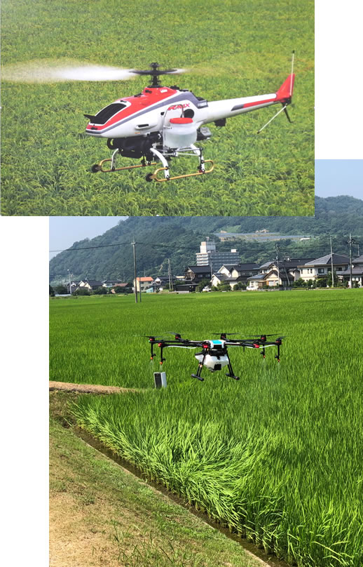 県内JAとも連携しながら、鳥取県全域での水稲を中心とした空中散布防除や、鳥取市・米子市周辺地域での高性能農機具による農作業を請負うなど、農家を支える仲間として地域農業の発展に貢献します。